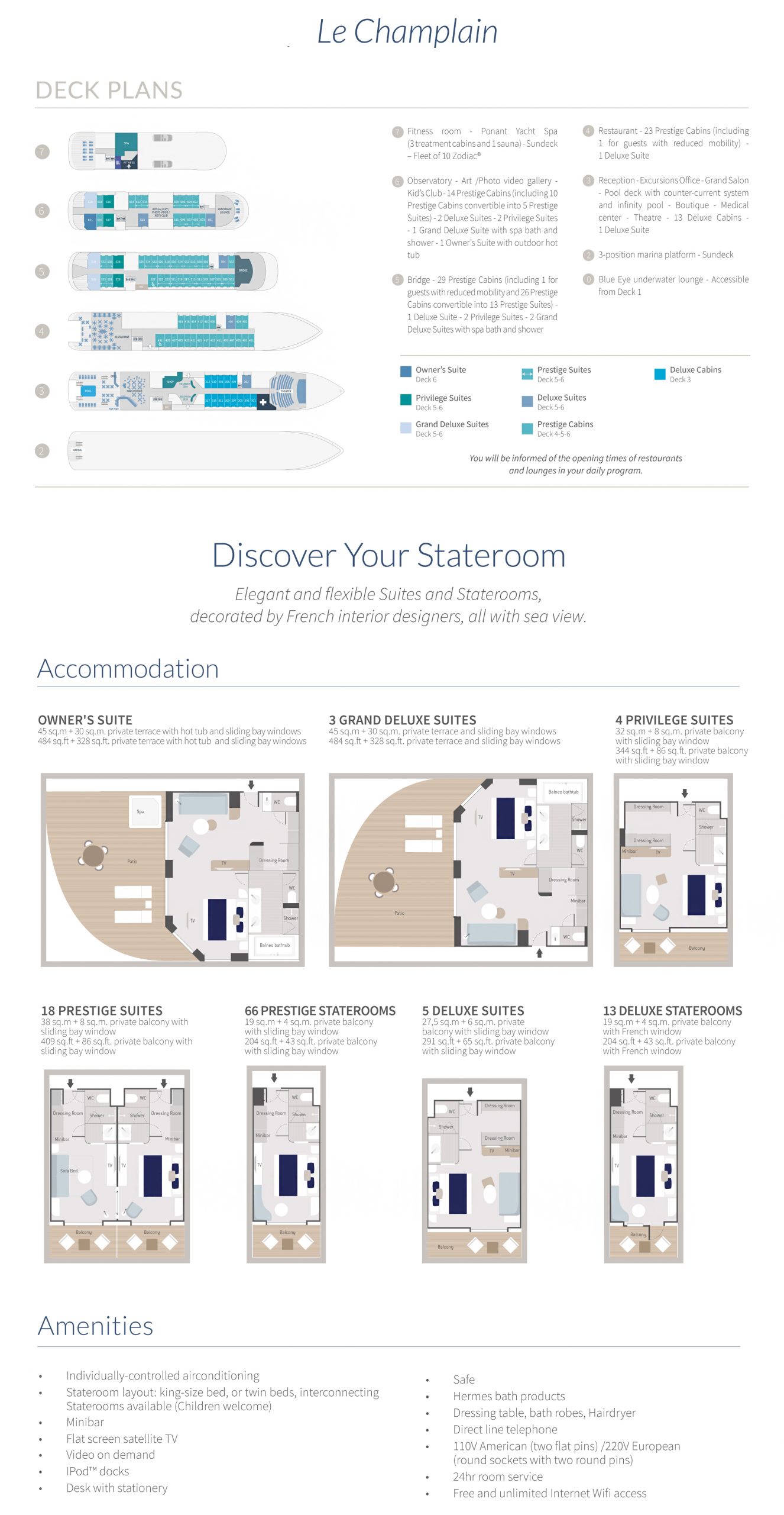 During your cruise you will stay onboard the luxurious Le Champlain, one of the finest expedition vessels in the world. With a maximum of 170 guests on board, you will get to know our professional and highly-skilled expedition team who will offer keen insight, unique perspectives, and hands-on attention not found in a guidebook.